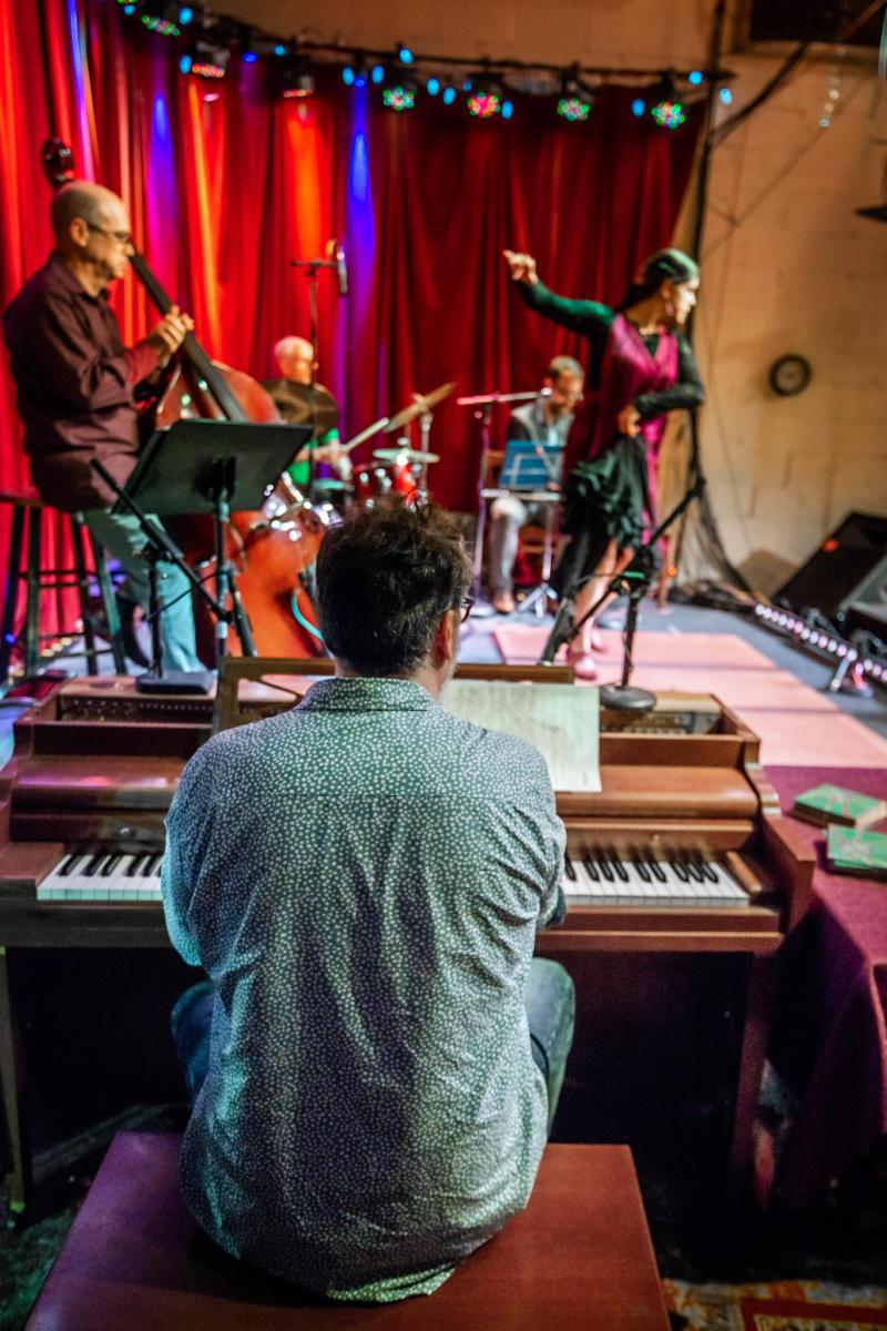 On October 13 and 15, 2019, flamenco and jazz music fans filled the house at both Gallery 992 and Red Light Café, respectively, to hear the innovation of New Bojaira, a quartet that has created a new sound by using the rules of jazz to navigate the structure of flamenco. They seamlessly blended familiar sounds of both genres in a journey between Spain and the United States of America. Their fusion is so deep that at times it is difficult to decipher which leg is leading the musical body: the one standing in jazz or the one standing in flamenco, and the listener can only succumb to the pure joy of being swept away by music.